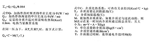 在工程設計中有時會碰到這樣的情況,要求產(chǎn)品既能伴熱保溫。又能將介質(zhì)開始是靜止的或流速較慢,流量較少,且所需升溫的度數(shù)不高時,有時用電伴熱產(chǎn)品也可以滿足設計要求。此時,該電伴熱產(chǎn)品的設計功率所產(chǎn)生的熱量按下式計算: