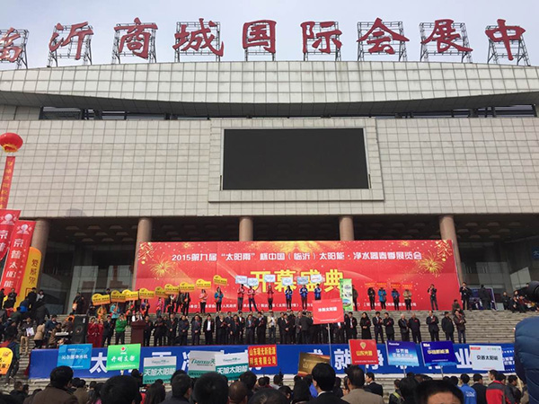 2015年3月,安徽環(huán)瑞內(nèi)貿(mào)同事攜帶環(huán)瑞新產(chǎn)品前往山東臨沂參加第九屆“太陽雨”杯太陽能·凈水器展覽會。