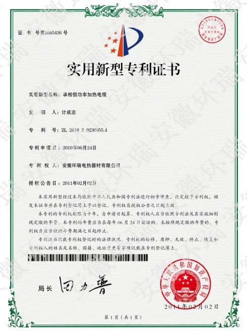 安徽環(huán)瑞單項恒功率電伴熱帶國家專利產(chǎn)品簡介